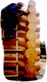 Viele nordische Holzbau – Spezialisten pflegen heute noch die Tradition, die Stämme komplett von Hand zu bearbeiten. Hierbei ist es unbedingt notwendig, dass die sorgfältig ausgewählten Stämme im Winter geschlagen und dann unverzüglich geschält werden. Jeder einzelne Stamm wird dann in individueller Handarbeit an den darunter liegenden Stamm angepasst. Dies setzt sehr großes fachliches Wissen voraus. Diese individuelle Art lässt den Stämmen weitgehend ihre natürliche Form und gibt Ihrem Haus einen sehr rustikalen, einzigartigen Touch. Die Wände Ihres Hauses werden komplett bei Fertigung aufgebaut, bleiben dann eine gewisse Trocknungszeit stehen und werden dann wieder abgebaut und versandt.